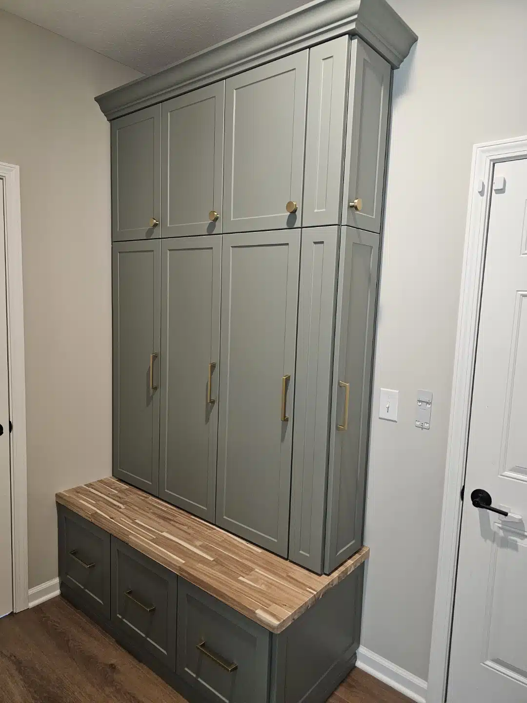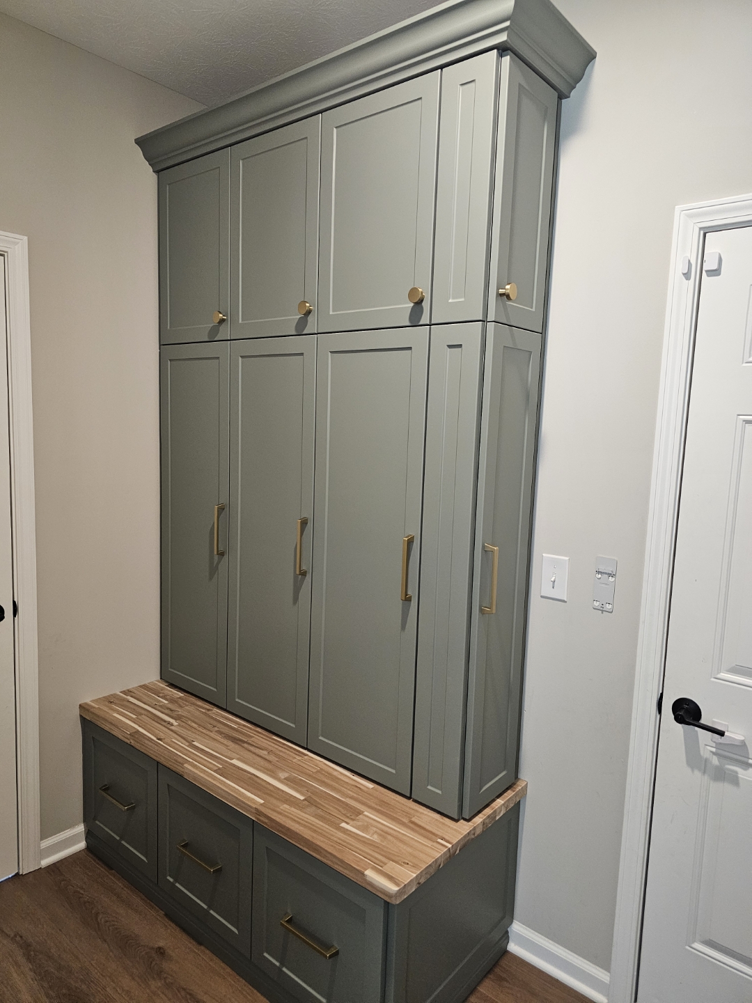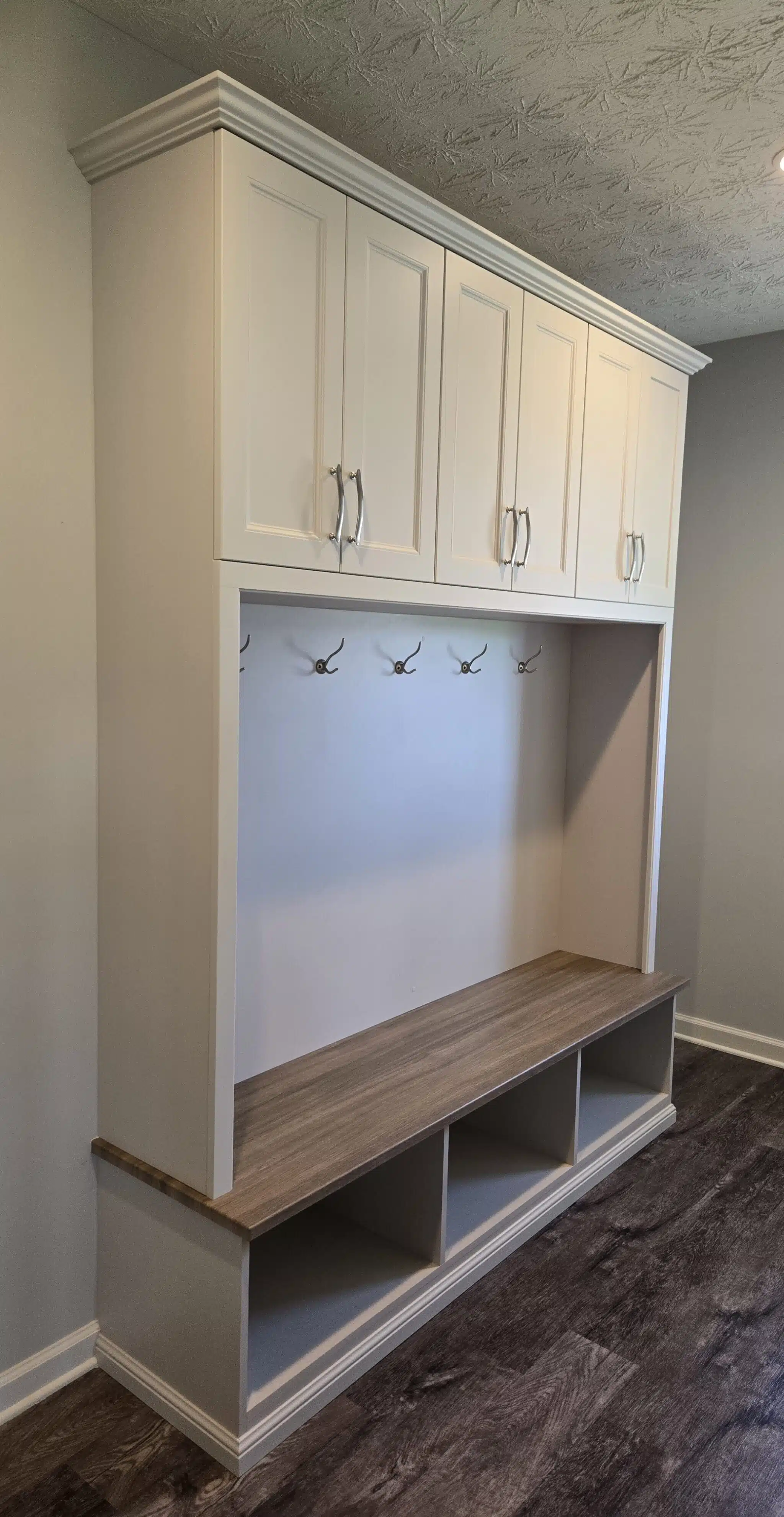 Is your mud room the catch all for sporting equipment, shoes for all seasons and anything or everything your kids drug in? Your mud room can be utilized efficiently with additional storage, hanging space and custom cabinets designed by our experts. Everything from outerwear to gym bags will have a place. We can even change the look of your entryway if your mud room, isn’t a separate room in your home.